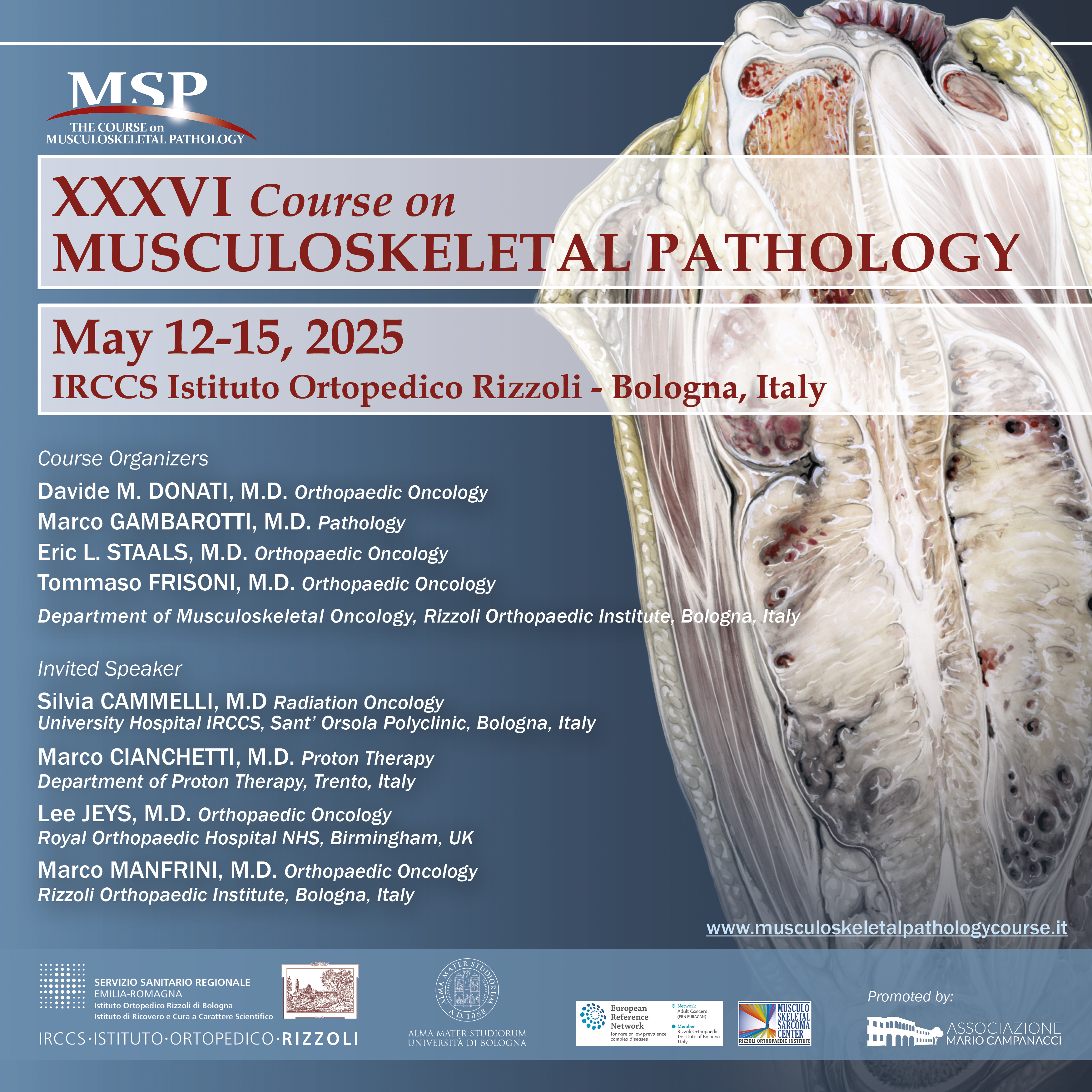 The Course consists in a 4-day update on diagnostics challenges and management decisions for bone and soft tissue tumors, with a particular emphasis on the clinico-pathologic and radiographic correlations.