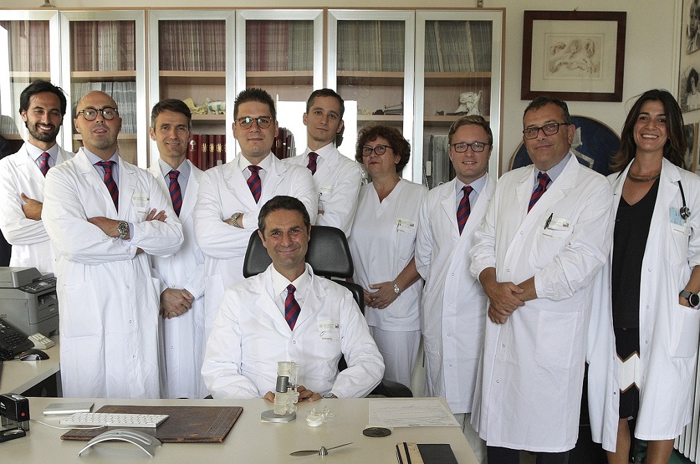 L'équipe medica della Chirurgia vertebrale ad indirizzo oncologico e degenerativo. Al centro seduto il direttore Dr. Alessandro Gasbarrini