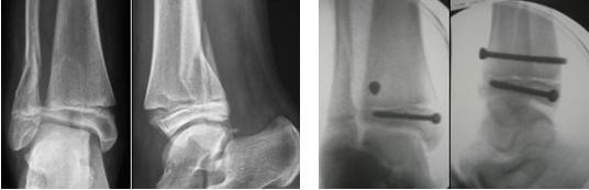 Anche nel trattamento dei distacchi epifisari tibiali distali il trattamento elettivo è conservativo. E’ necessaria tuttavia un riduzione anatomica in modo da ripristinare la continuità della placca cartilaginea ed evitare la formazione di ponti ossei di epifisiodesi che comporterebbero successiva dismetria o deformità.