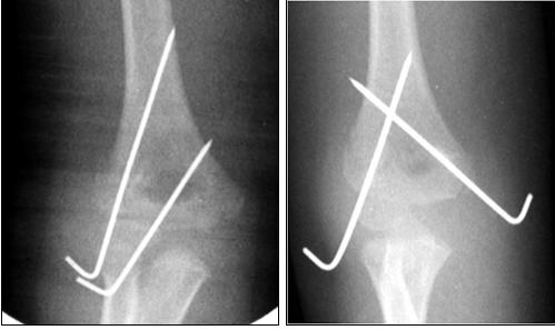 - In caso di insuccesso del trattamento conservativo il trattamento chirurgico prevede la riduzione cruenta/incruenta e la sintesi con fili di Kirscher generamente percutanei e successivamente inglobati in apparecchio gessato. Torna su