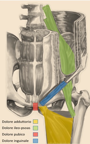 La prima si manifesta con un dolore più centrale, in corrispondenza della sinfisi pubica e la seconda invece come dolore più profondo esacerbato dalla flessione attiva dell’anca o dallo stretching in estensione. Queste due entità cliniche e in particolare la tendinite dello psoas, si presentano più frequentemente nei runners (o corridori).