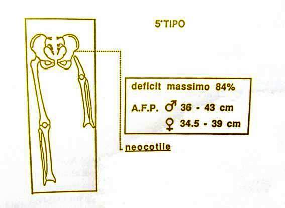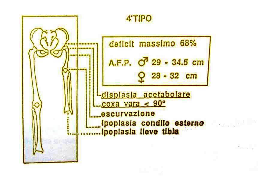 Si distingue dal 3° tipo per la coxa vara più accentuata, sempre inferiore ai 90°. Il DPM è del 68%, l'AFP varia fra 29 e 34,5 cm nel maschio, e tra 28 e 32 cm nella femmina.