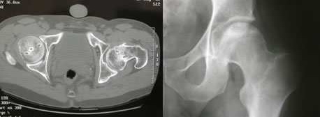 Le radiografie tradizionali possono evidenziare modeste alterazioni di densità con disomogeneità nella trama ossea o possono arrivare a mostrare franche alterazioni della morfologia della testa femorale che si deforma completamente (vedi fig. sottostante).