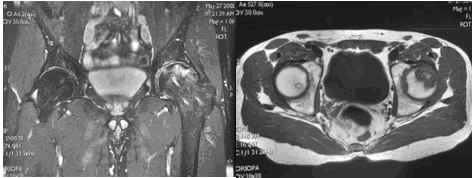 Figura 4: Tagli di Risonanza Magnetica di bacino, gold standard per la dignosi di necrosi avascolare dell’anca