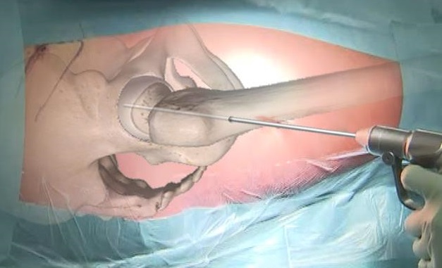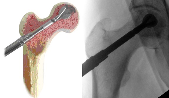 Sotto controllo scopico si infigge il filo di K attraverso il collo femorale fino all’area di necrosi.