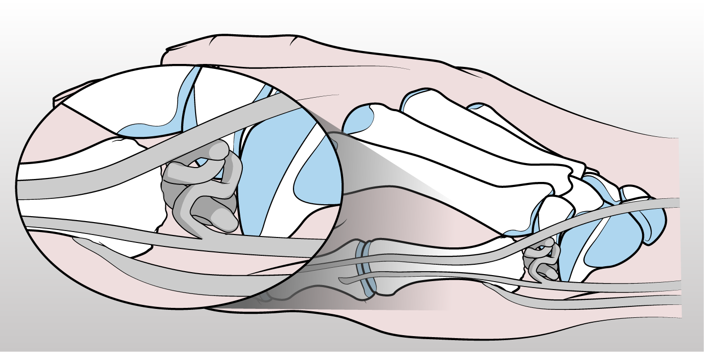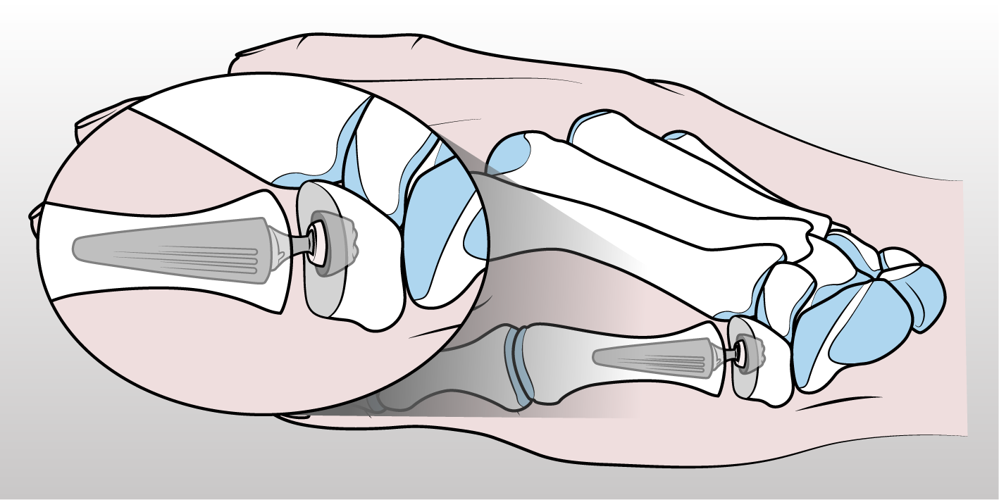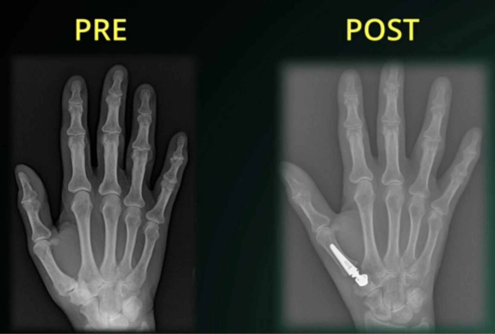 (1) Artrodesi Trapezio-Metacarpale: Fusione del trapezio con il primo metacarpo per stabilizzare l'articolazione, mantenendo la forza di presa, ma limitando il movimento.