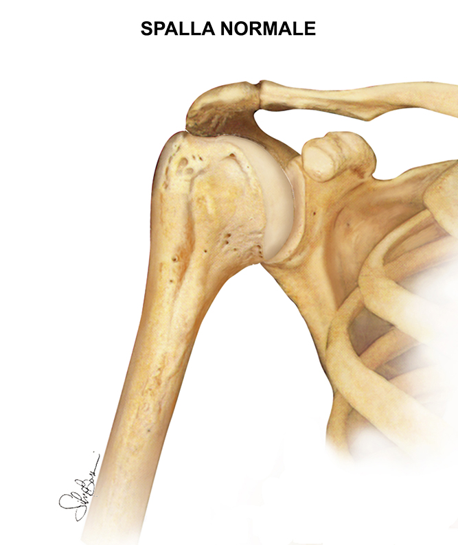 L’articolazione della spalla è composta da tre ossa: l’omero, la scapola e la clavicola le quali a loro volta si uniscono a formare 2 distinte articolazioni: acromion-clavicolare e gleno-omerale. Le superfici articolari sono ricoperte da cartilagine, una sostanza liscia che protegge le ossa e consente loro di muoversi con facilità. Inoltre un migliore scorrimento delle superfici articolari è garantito dalla membrana sinoviale, la quale ricoprendo parte delle superfici articolari, produce un liquido in grado di lubrificare la cartilagine ed elimina quasi ogni attrito nella spalla.