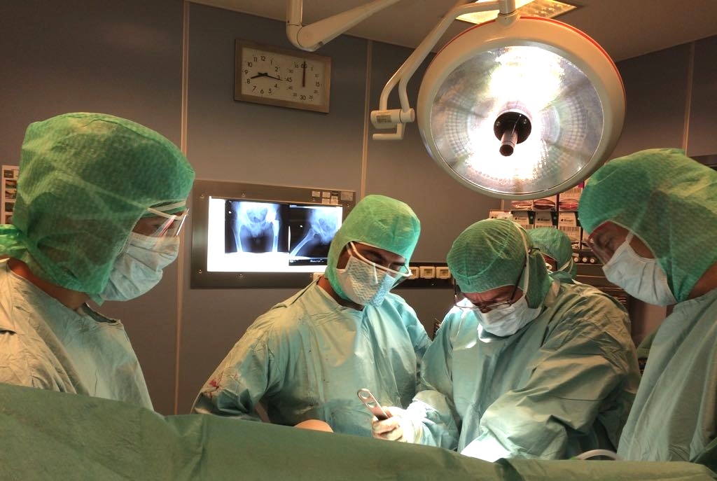 • Pathologies of the hip represent one of the most developed areas of treatment of the department. The Unit performs hip prosthesis interventions through several surgical points of access, with special attention to mini-invasive surgical techniques, performed both anteriorly and postero-laterally, aiming to reduce surgical traumas on tissues and to accelerate rehabilitation. We privilege the utilization or innovative materials such as porous titanium and ceramic, in addition to less voluminous prostheses, capable of reducing the quantity of bone which needs to be forgone in order to implant the prosthesis itself. Special attention is dedicated to the prosthetic treatment in case of outcomes of severe hip pathologies, such as congenital dysplasia, epiphysiolysis and Perthes. We perform surgical interventions for corrective osteotomy in case of severe deformities of the proximal femur in young patients, and conservative surgical interventions in case of hip pathologies which, if untreated, may cause alterations in the articular mechanic eventually leading to precocious secondary arthrosis. A fundamental role is played by revision surgery on mobilized or infected prosthetic implants, with the utilization of the most modern and innovative techniques, in addition to bone implants and bone substitutes to correct severe bone defects deriving from the mechanic failure of the prosthetic implant under revision.