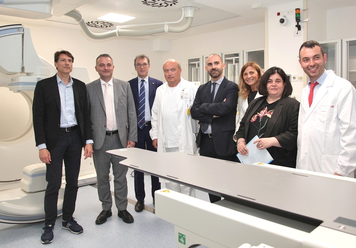 The new AngioTAC, which is located on the ground floor of the hospital at the Diagnostic and Interventional Radiology, is in operation for a few days. It is a hybrid system: an angiography machine combined with a CT scanner that, through the combination of an ultrasound, allows interventional radiologists to simultaneously benefit from multiple diagnostic imaging equipment, allowing to achieve a more complete and useful result. "In this way not only times are reduced - Miceli specifies - but greatly increase the chances of treatment for our patients, starting from oncological cases up to musculoskeletal pathologies in which surgery is not recommended".