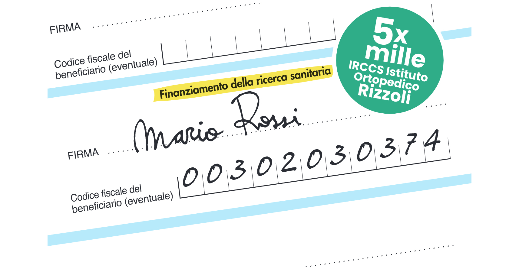 Si tratta dunque di un’opportunità importante per contribuire al finanziamento della ricerca sanitaria del Rizzoli. Per questo ti chiediamo di indicare, e far indicare, l'Istituto Ortopedico Rizzoli quale beneficiario del 5 per mille!