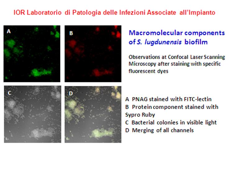 Le ricerche sull'adesione batterica ai biomateriali e sulla patologia molecolare delle infezioni associate all'impianto sono state introdotte nell'Istituto Ortopedico Rizzoli dall'attuale Responsabile del Laboratorio di Patologia delle infezioni associate all'impianto sin dal 1986 nell'ambito del Laboratorio di Biocompatibilità dei Materiali da Impianto e dal 2000 si sono sviluppate nel Laboratorio di Patologia delle infezioni associate all'impianto.