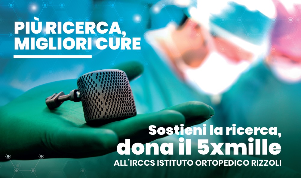 Sostieni la ricerca scientifica dell’Istituto Ortopedico Rizzoli con il 5 per mille! Basta un piccolo gesto: scrivi il codice fiscale dell’Istituto – 00302030374 – e firma nell’apposito riquadro (finanziamento della ricerca sanitaria) del modello utilizzato per la dichiarazione dei redditi.