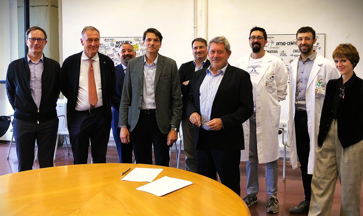 27 Ottobre 2022La scorsa settimana è stata firmata un’intesa di collaborazione tra la Banca del Tessuto Muscoloscheletrico dell’Emilia-Romagna presso l’Istituto Ortopedico Rizzoli di Bologna e BIOBank, banca francese leader negli innesti ossei. Il direttore della BTM dottor Dante Dallari, insieme al team Ricerca e Sviluppo della Banca e al direttore generale del Rizzoli Anselmo Campagna, hanno incontrato il presidente di BIOBank Patrick Joucla, giunto con la sua squadra a Bologna.