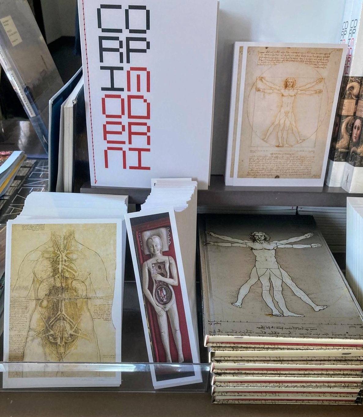 Il manichino è esposto nella prima parte della mostra, intitolata “Anatomia”, a fianco della Great Lady (Sistema cardiovascolare e organi del torso femminile) di Leonardo da Vinci, capolavoro assoluto, definita la Monna Lisa dell’anatomia, proveniente dalla Collezione reale inglese di Windsor. Nella stessa sala torna a essere visibile al pubblico, dopo sei anni, l’Uomo vitruviano (Studio proporzionale di corpo maschile) di Leonardo, tra le icone delle Gallerie dell’Accademia e dell’intero patrimonio culturale mondiale, che per la prima volta viene messo in relazione con disegni straordinari sul corpo umano. In particolare, Studi per la Sibilla libica di Michelangelo, che torna per la prima volta in Italia dopo un secolo dal Metropolitan Museum of Art di New York. È un disegno preparatorio per la Cappella Sistina, considerato il più bel disegno di anatomia artistica del Rinascimento.