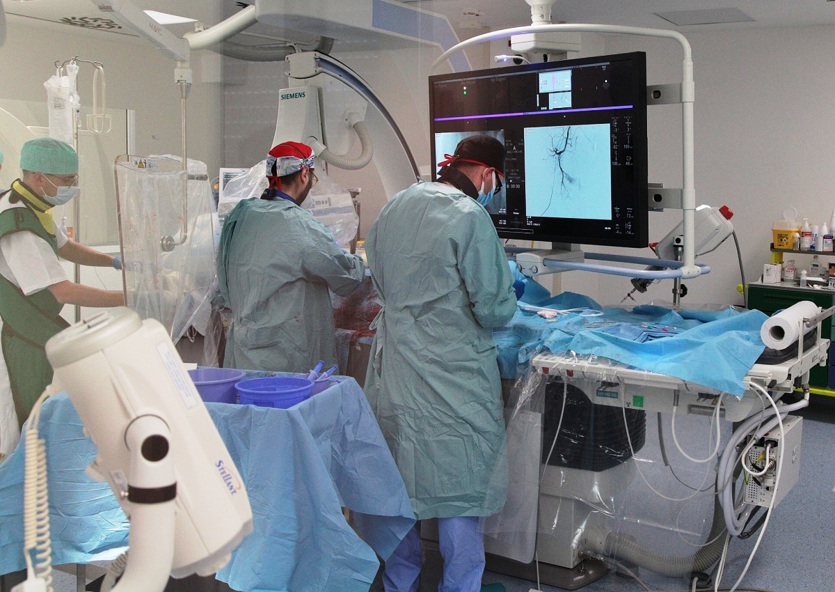 Questo procedimento è reso possibile, oltre che dall’alta specializzazione del personale del Rizzoli, anche dalla presenza in Istituto di una sala angio-suite: acquisita grazie a un investimento di 2 milioni di euro, è dotata di un angiografo digitale, di una TC (Tomografia Computerizzata) a 128 strati con doppia energia e di un ecografo per la localizzazione delle strutture anatomiche più superficiali.