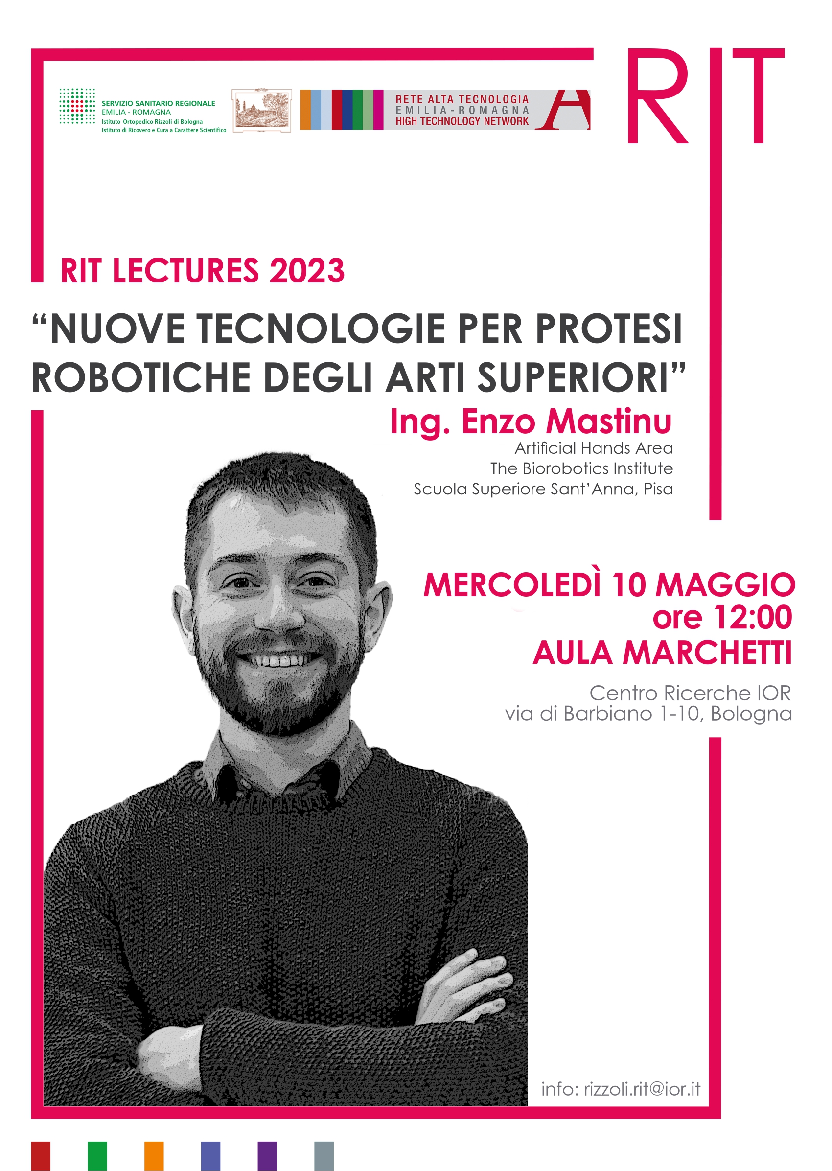 Si terrà mercoledì 10 maggio 2023 alle ore 12, in presenza, nell’Aula Marchetti del Centro di ricerca Codivilla-Putti dell’Istituto Ortopedico Rizzoli la conferenza promossa dal Dipartimento Rizzoli-RIT dal titolo "nuove tecnologie per protesi robotiche degli arti superiori".
